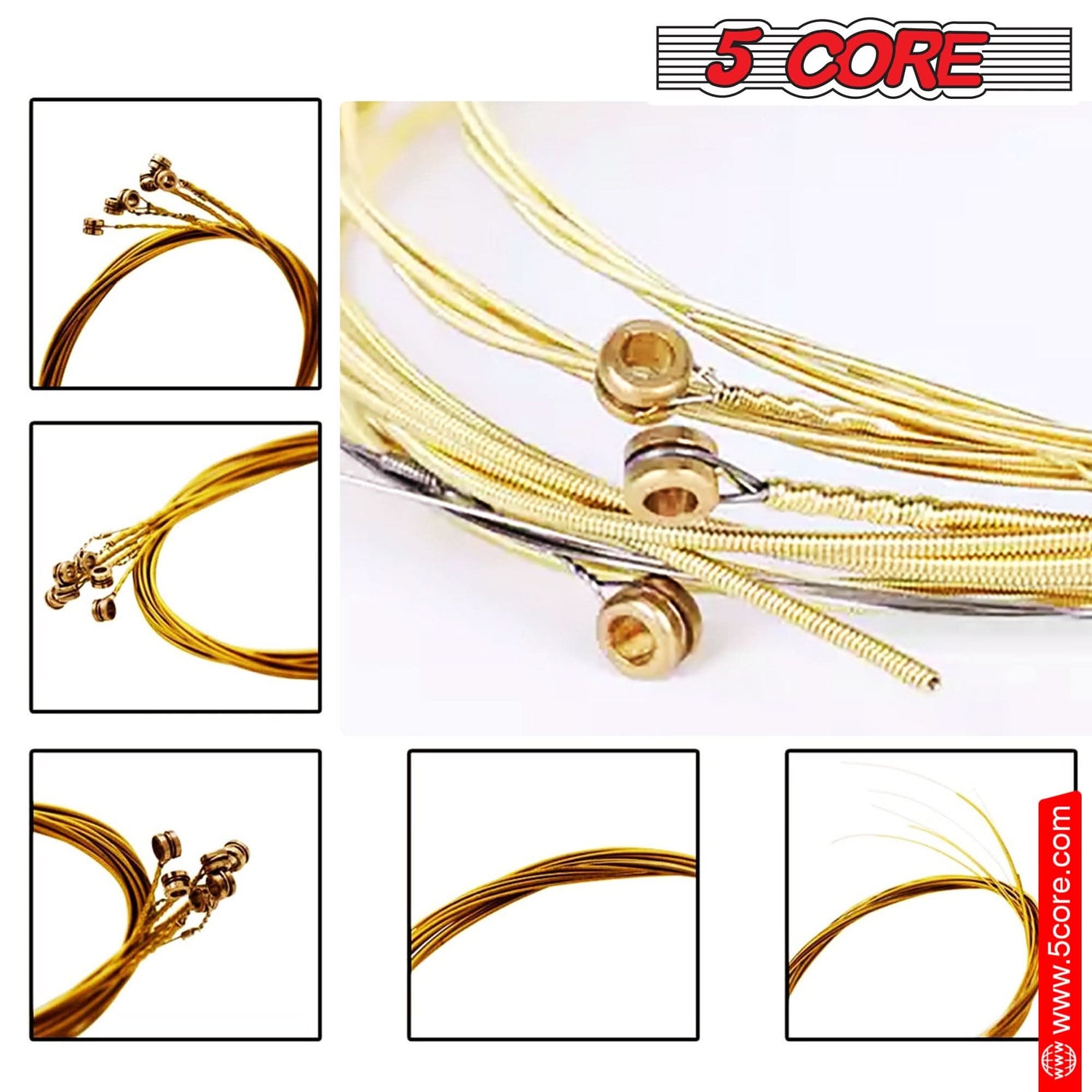 5 Core Acoustic Guitar 6 String Set Medium Gauge Steel Carbon Core Bright Powerful Tone Heavy Duty