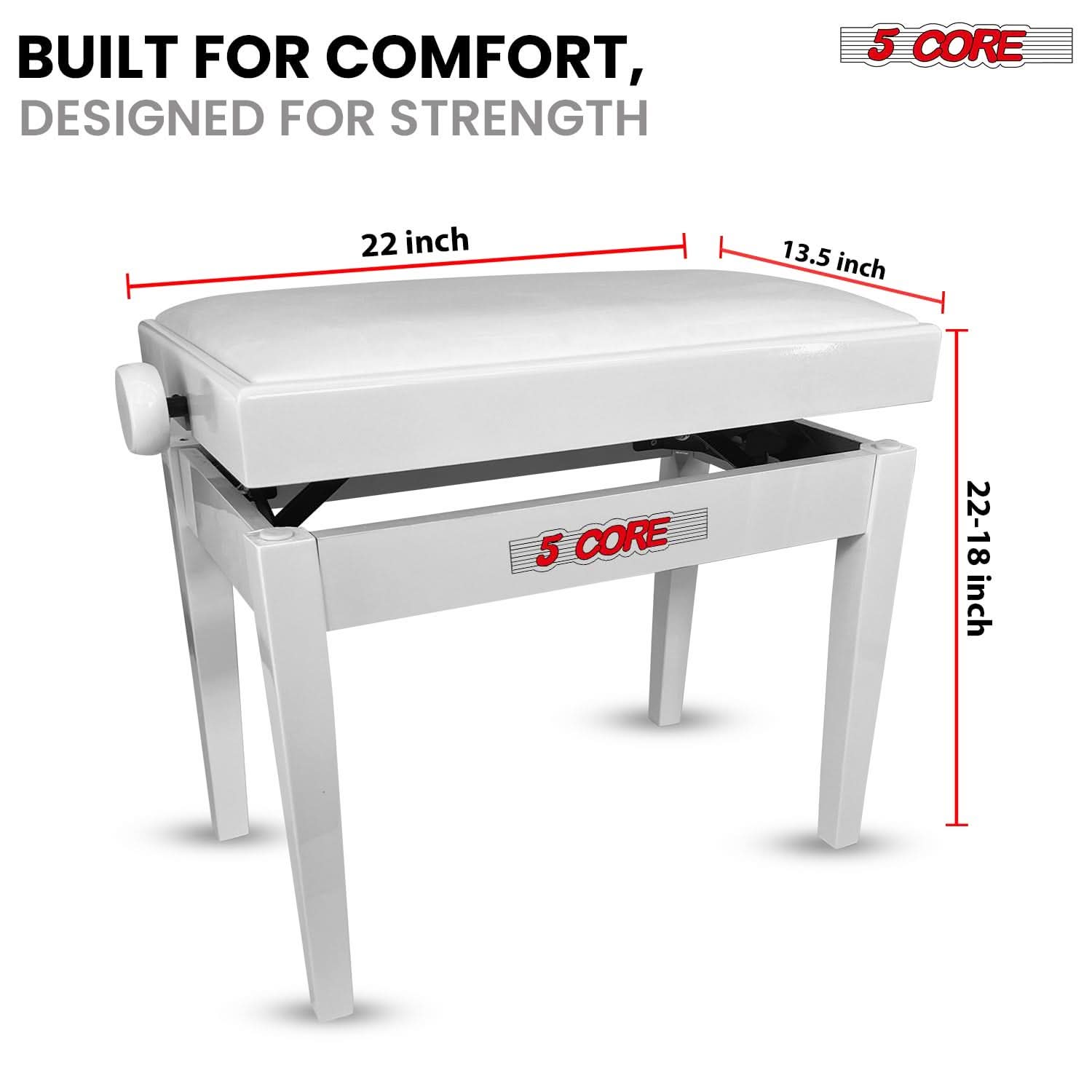 5 Core Adjustable Piano Bench Thick 3.25" Solid Wood Keyboard Stool Heavy Duty Musician Chair