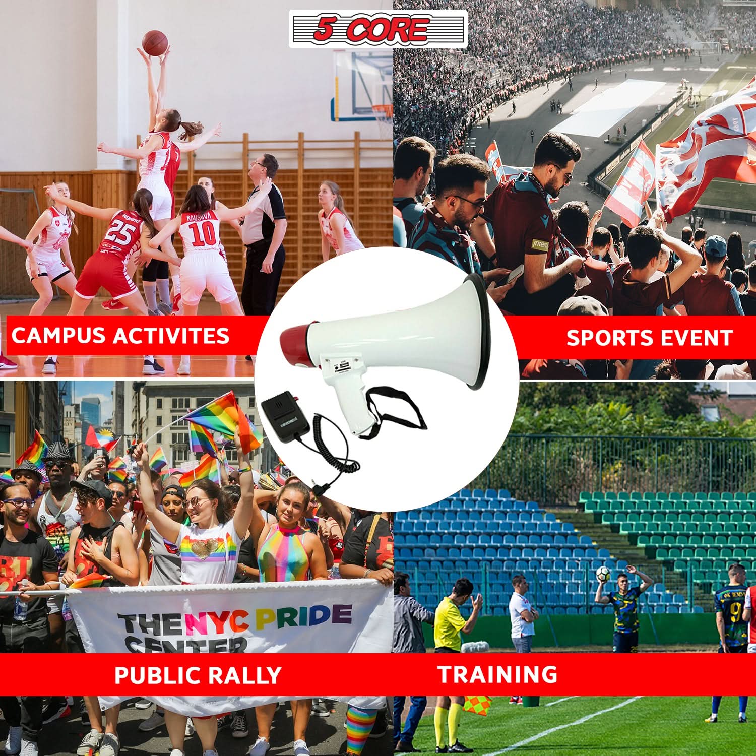5 Core Megaphone 50W Bull Horn PA Speaker w 300M Range Loud Siren Voice Amplifier Portable