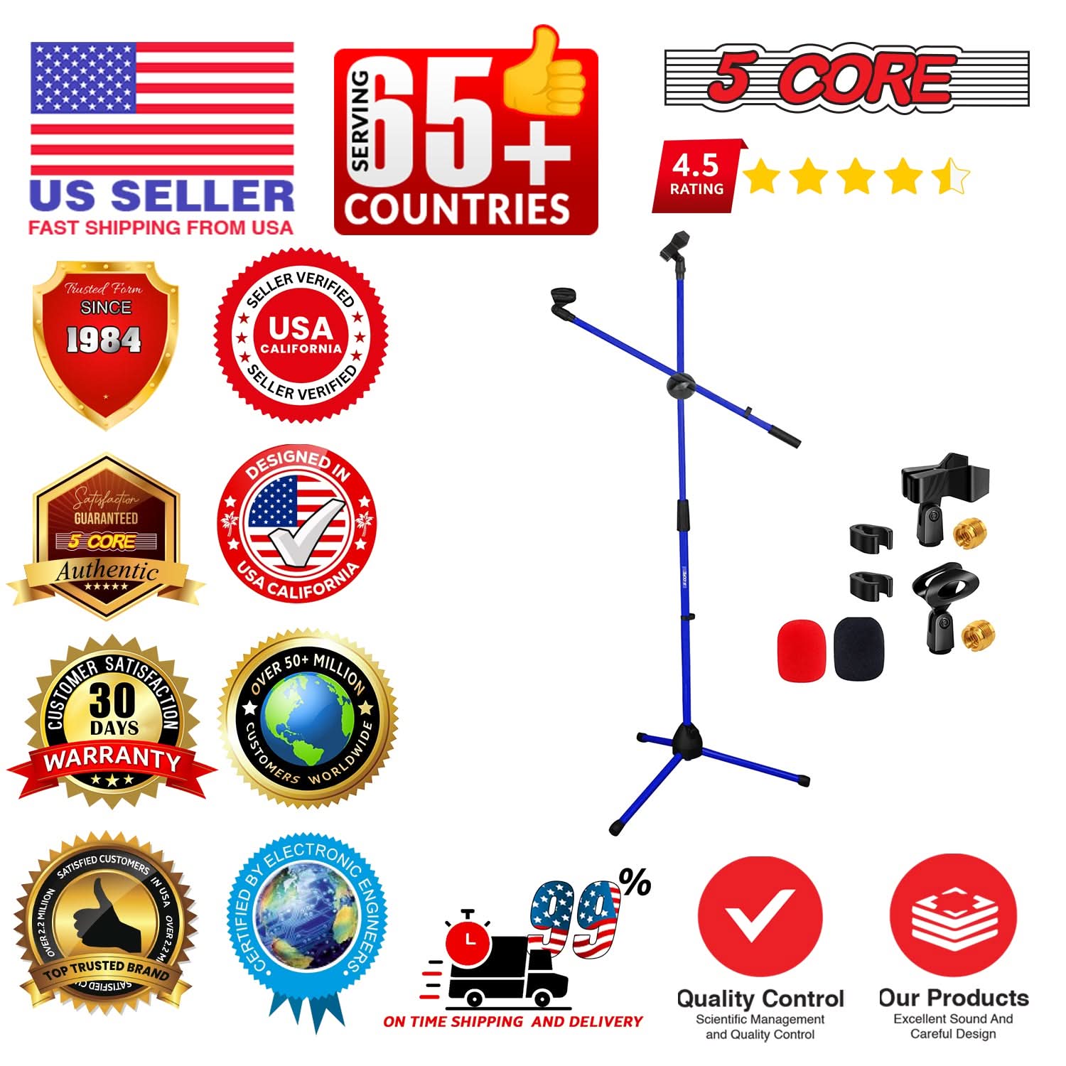 5 Core Mic Stand Floor Height Adjustable Tripod Microphone Stands w Extending Telescoping Boom Arm