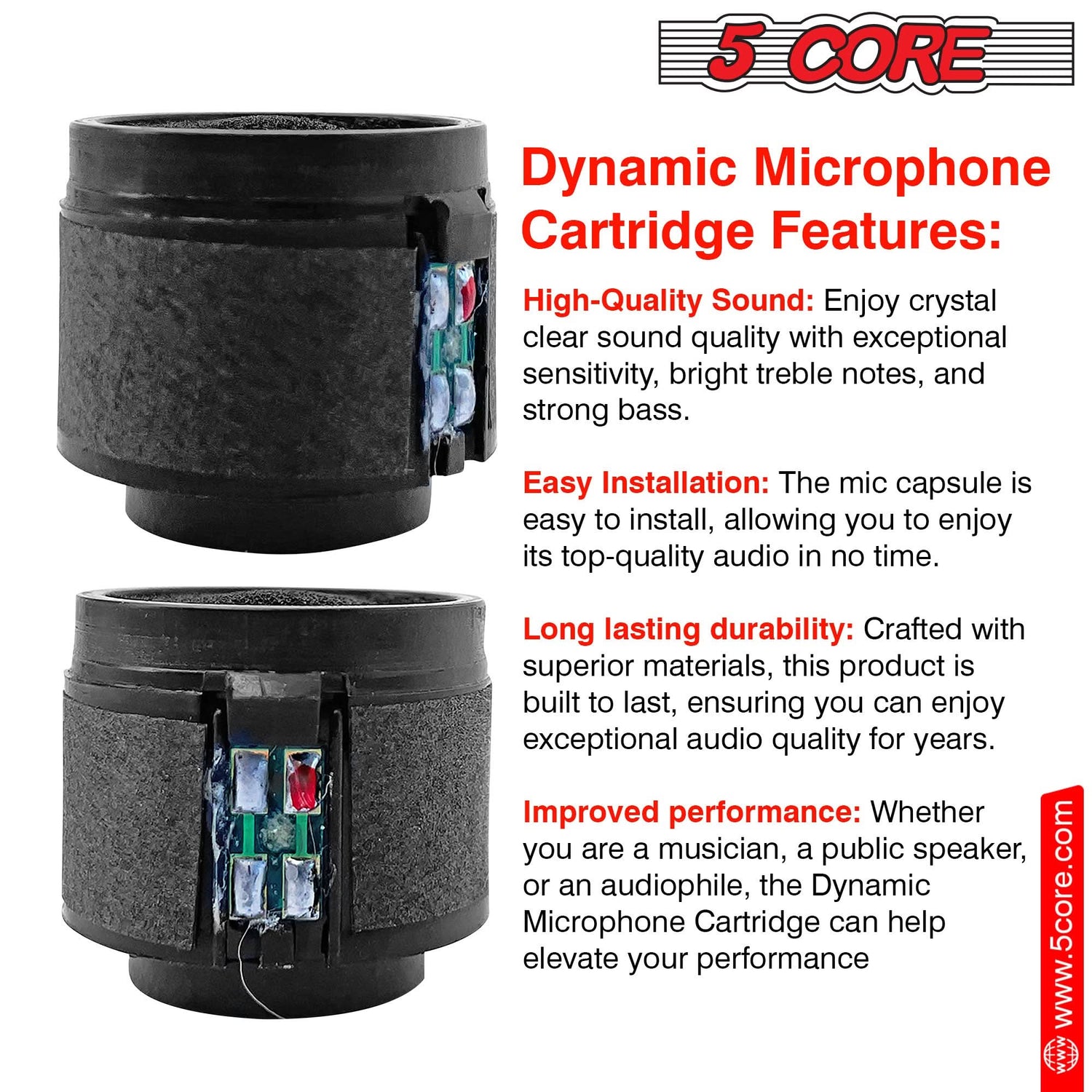 5 Core Microphone Replacement Cartridge 20Pc Neodymium Magnet Unidirectional Capsule for Dynamic Mic