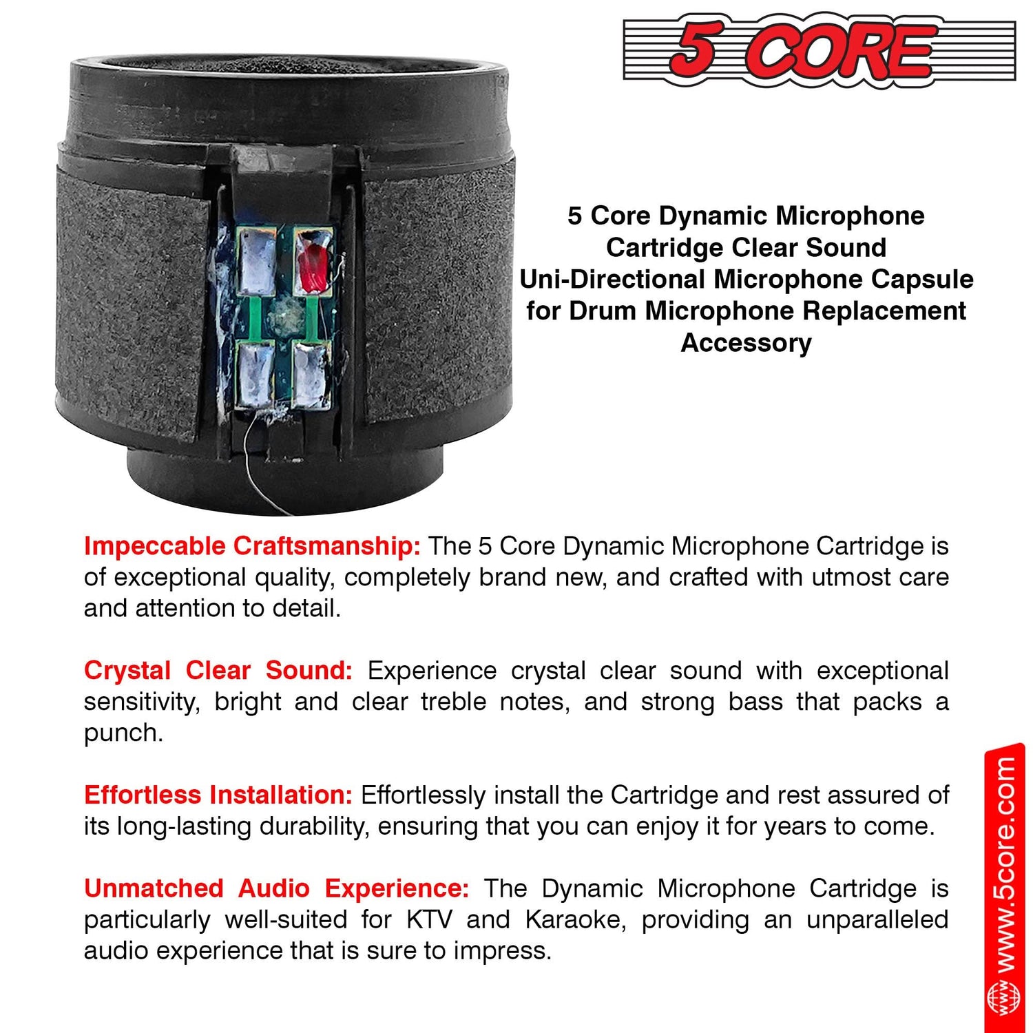 5 Core Microphone Replacement Cartridge 20Pc Neodymium Magnet Unidirectional Capsule for Dynamic Mic is backordered and will ship as soon as it is back in stock.