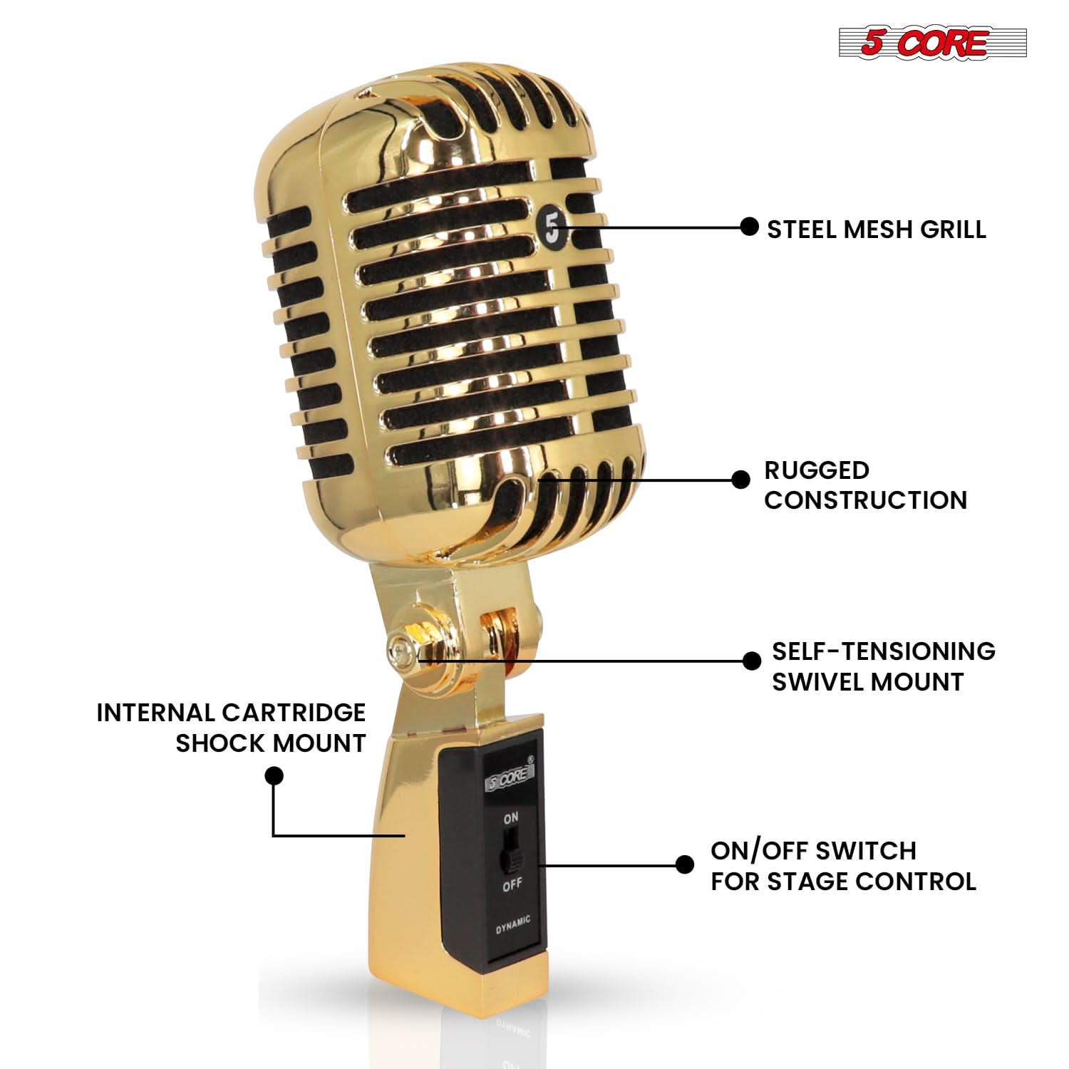 5Core Vintage Microphone Classic Dynamic Professional XLR Studio Retro Style Mic Gold