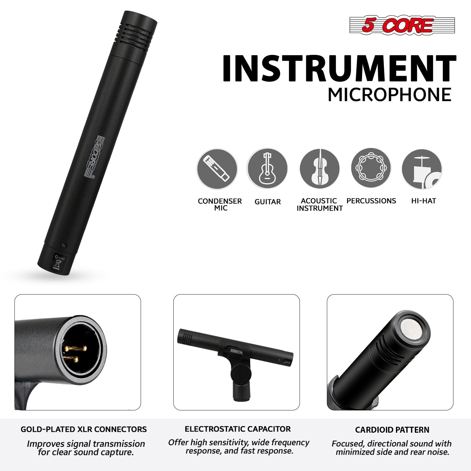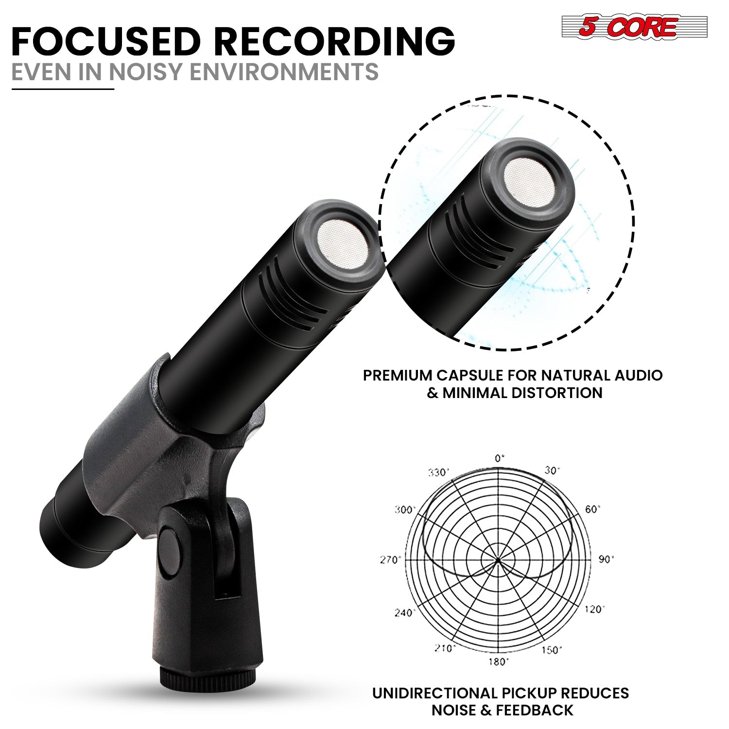 5 Core Drum Microphone Kit 9Pc All Metal Drummer Mics Tom/Snare & Cymbals Wired Instrument Drums Set